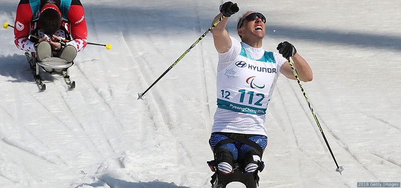 Andy Soule celebrates gold at the PyeongChang 2018 Winter Paralympic Games.