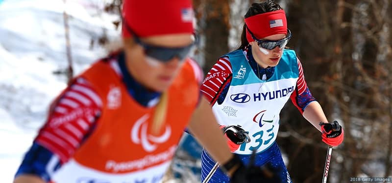 Mia Zutter (right) and guide Kristina Trygstad-Saari (left) compete in the PyeongChang 2018 Winter Paralympic Games.