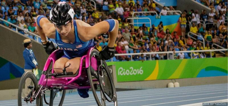 Alexa Halko preps for the start of a race at the Rio 2016 Paralympic Games.